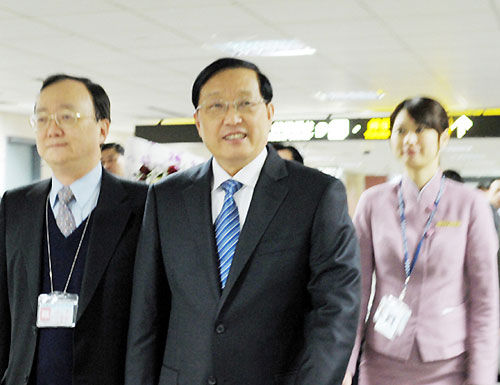 遼寧省省長(zhǎng)陳政高率領(lǐng)代表團(tuán)于2月15日23時(shí)抵達(dá)臺(tái)北桃園機(jī)場(chǎng)。東北新聞網(wǎng) 馬哲 攝