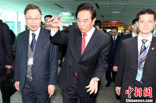 應(yīng)臺灣;鶗麻L江丙坤之邀,23日上午11時32分許,海峽兩岸關(guān)系協(xié)會會長陳云林率海協(xié)會經(jīng)貿(mào)考察團搭乘CA185班機抵臺。