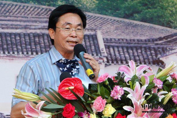 梅州市臺商協(xié)會會長何培才以“客觀天下《幸?图颐婷嬗^》”為主題進行演講。(中國臺灣網(wǎng) 馮江 攝)