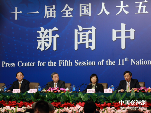 十一屆全國(guó)人大五次會(huì)議在梅地亞中心舉行記者會(huì),中國(guó)人民銀行副行長(zhǎng)胡曉煉出席記者會(huì)并就兩岸貨幣清算等問(wèn)題回答記者提問(wèn)。(中國(guó)臺(tái)灣網(wǎng) 王偉 攝)
