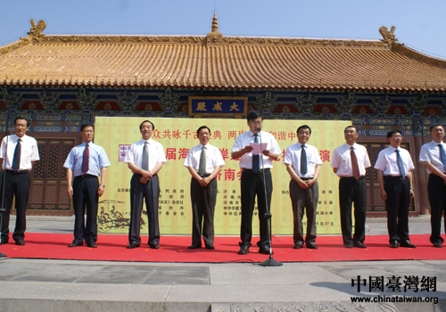 濟南市副市長王新文、臺中市市長胡志強分別出席濟南、臺中會場開幕式并致辭。王新文在致辭中說,兩岸同胞血同緣、書同文、語同聲,都是中華文化的傳人。此次活動是一個很好的溝通平臺,對于兩岸之間文化的交流和融合起到了很好的促進作用。濟南是一座人文底蘊深厚的歷史文化名城,一貫注重汲取經典文化智慧,大力提升市民文化素養(yǎng)和城市文化內涵。今后,將更加充分借助這個平臺,充分挖掘、整合特色文化資源,推動深入交流和廣泛合作,共同繼承和弘揚中華文化,促進兩岸文化事業(yè)的繁榮。