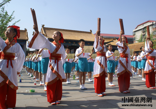中國臺灣網5月28日濟南消息 5月27日上午,由濟南市政府、臺中市政府、山東省臺辦、國臺辦《兩岸關系》雜志社、中國孔子基金會和臺灣中華華夏文化交流協(xié)會共同主辦的“和諧中華·第三屆海峽兩岸經典文化推廣會演”在濟南市、臺中市、廈門市及香港、澳門等地同時開幕。海峽兩岸數(shù)萬名青少年同聲誦讀中華經典,盛況空前。