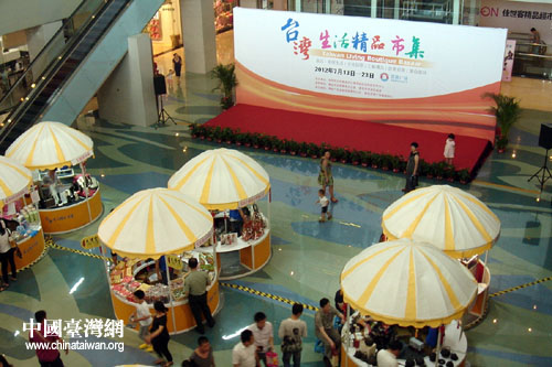 中國(guó)臺(tái)灣網(wǎng)7月16日青島消息 日前,由國(guó)臺(tái)辦海峽經(jīng)濟(jì)科技合作中心主辦,青島市臺(tái)辦、青島市市南區(qū)政府協(xié)辦的“2012臺(tái)灣生活精品市集”在青島百麗廣場(chǎng)隆重開幕。在為期11天的展期中,來自臺(tái)灣的60余家知名企業(yè)將展出精致、創(chuàng)意、休閑、時(shí)尚、科技類的數(shù)百款寶島特產(chǎn)。