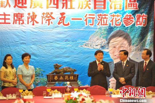 陳際瓦表示,近年來,廣西臺灣兩地經貿、文化、醫(yī)療衛(wèi)生等各方面的交流合作已頗具規(guī)模。臺灣政商界高層參訪廣西越來越多,兩地人員交往日趨頻繁。每年到廣西旅游、考察、參訪的臺胞超過50萬人次,廣西居民赴臺人數(shù)達2.3萬人次,與3年前比增加3倍。
