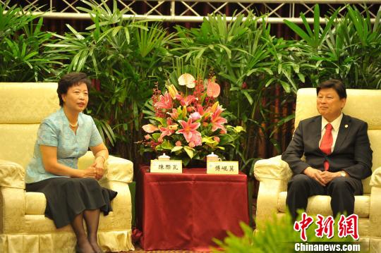廣西壯族自治區(qū)政協(xié)主席陳際瓦會見花蓮縣長傅崐萁!O潔 攝