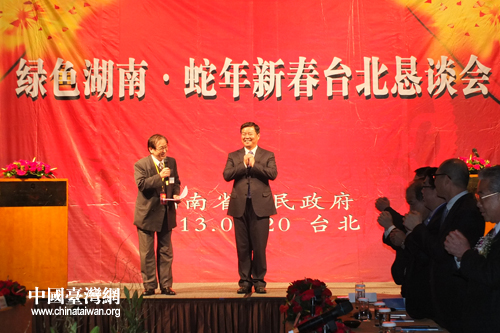 綠色湖南·蛇年新春臺北懇談會在臺北舉行,湖南副省長何報翔出席。(湖南省臺辦 王敏杰 攝)
