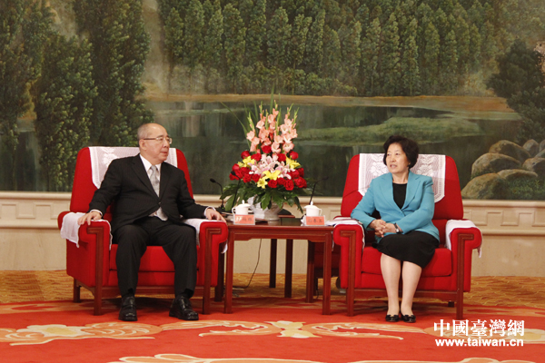中國臺灣網(wǎng)7月4日天津消息 7月4日,中共中央政治局委員、天津市委書記孫春蘭在天津迎賓館會見中國國民黨榮譽主席吳伯雄、臺灣貿易中心董事長王志剛等參加第六屆津臺投資合作洽談會暨2013天津·臺灣名品博覽會的臺灣嘉賓。(中國臺灣網(wǎng)記者 郭慶娜)