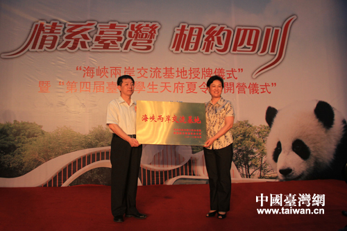 中國臺灣網(wǎng)8月8日成都消息 今日上午,“海峽兩岸交流基地”授牌儀式在成都大熊貓繁育基地正式舉行。中央臺辦、國臺辦副主任葉克冬,四川省委副書記柯尊平,四川省人民政府副省長黃彥蓉等出席。包括參加第四屆臺灣學生天府夏令營活動的川臺兩地師生在內,共130余人參加了授牌儀式。