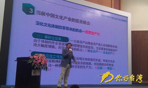 你好臺(tái)灣網(wǎng)廈門10月27日消息(記者 盛志耘) 10月26日上午,一場(chǎng)以“文化對(duì)接資本﹒智造美麗中國(guó)”為主題的文化產(chǎn)業(yè)投資論壇正在第六屆文博會(huì)上舉行。來自兩岸的重量級(jí)嘉賓在這里共同探討文化產(chǎn)業(yè)投資的現(xiàn)狀與問題、機(jī)遇與挑戰(zhàn)。