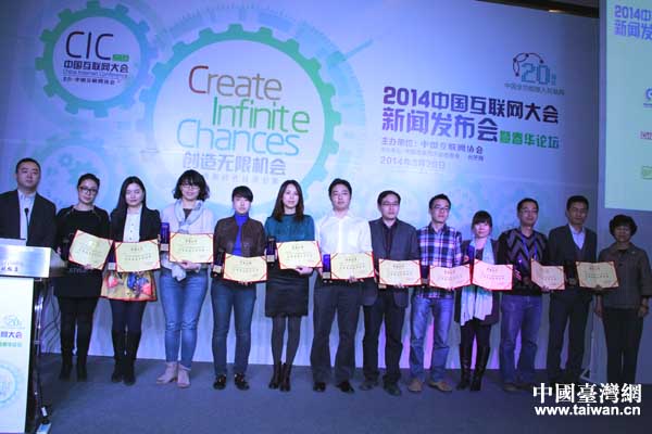 新聞發(fā)布會上,2014中國互聯(lián)網(wǎng)大會對戰(zhàn)略合作伙伴進(jìn)行授牌。(中國臺灣網(wǎng) 王偉 攝)