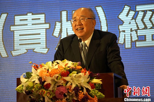 兩岸(貴州)經(jīng)貿(mào)交流合作論壇29日在臺(tái)北啟幕,中國(guó)國(guó)民黨榮譽(yù)主席連戰(zhàn)、吳伯雄,海峽交流基金會(huì)董事長(zhǎng)林中森,臺(tái)灣工業(yè)總會(huì)理事長(zhǎng)許勝雄以及鴻?萍技瘓F(tuán)董事長(zhǎng)郭臺(tái)銘出席。