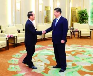 中共中央總書記習(xí)近平7日上午在人民大會堂會見親民黨主席宋楚瑜一行。習(xí)近平強調(diào),兩岸關(guān)系和平發(fā)展是兩岸同胞順應(yīng)歷史潮流作出的共同選擇。只要我們都從“兩岸一家親”的理念出發(fā),將心比心,以誠相待,就沒有什么心結(jié)不能化解,沒有什么困難不能克服。
