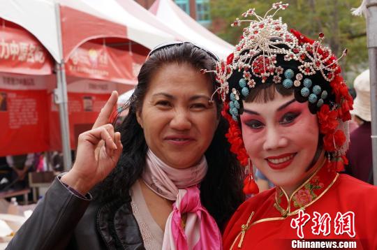 2月20日,在臺中市舉辦的第五屆海峽兩岸春節(jié)民俗廟會上,臺灣戲迷追到幕后與豫劇名角魏俊英合影留念!±钯F剛 攝