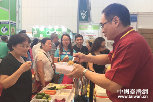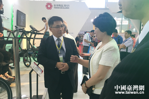“臺灣精品館”中,展商介紹產(chǎn)品詳情。(中國臺灣網(wǎng) 張潔 攝)