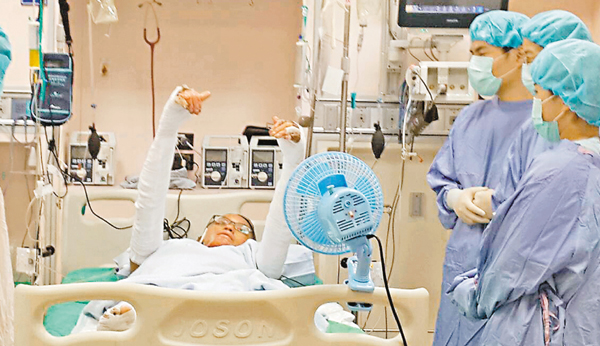 18歲的傷者阿弘,80%燒燙傷面積,如今已漸漸恢復(fù)體力。 中央社