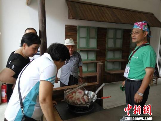 來自基隆額掌柜余先生向游客介紹臺灣肉圓!「呤缙肌z