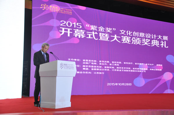 中國(guó)臺(tái)灣網(wǎng)10月29日南京訊 10月28日上午,“紫金獎(jiǎng)”文化創(chuàng)意設(shè)計(jì)大展開(kāi)幕式暨大賽頒獎(jiǎng)典禮在南京新莊國(guó)展中心舉行。省委常委、宣傳部部長(zhǎng)王燕文出席并啟動(dòng)開(kāi)幕按鈕,大賽主承辦單位領(lǐng)導(dǎo),臺(tái)灣文創(chuàng)產(chǎn)業(yè)聯(lián)盟榮譽(yù)理事長(zhǎng)李永萍等境內(nèi)外大賽評(píng)委會(huì)專(zhuān)家以及首屆大賽組委會(huì)大獎(jiǎng)獲得者為大賽金獎(jiǎng)獲得者頒獎(jiǎng)。