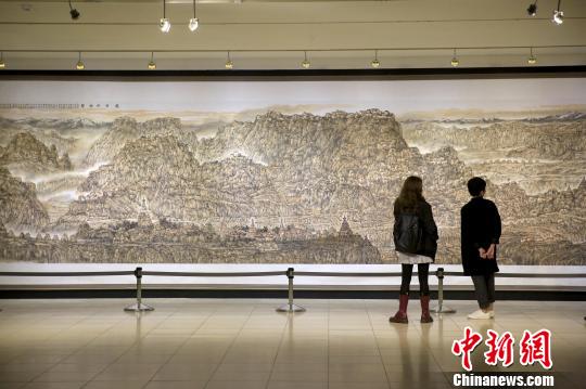 12月27日,觀眾在臺北孫中山紀(jì)念館內(nèi)觀展。《水墨家園──李小可作品展》近日開幕,共展出包括古都遺韻、雪域藏跡、山水黃山和師法自然等系列的75幅作品!£愋≡浮z