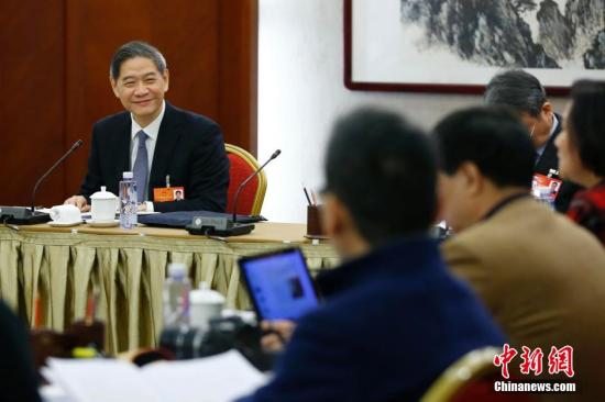 3月8日,十二屆全國人大四次會議臺灣代表團(tuán)舉行全體會議。中共中央臺辦、國務(wù)院臺辦主任張志軍參加會議。中新社記者 富田 攝