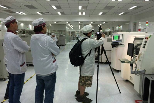 臺(tái)灣記者采訪緯創(chuàng)科技有線公司生產(chǎn)線。