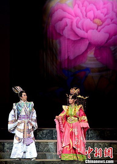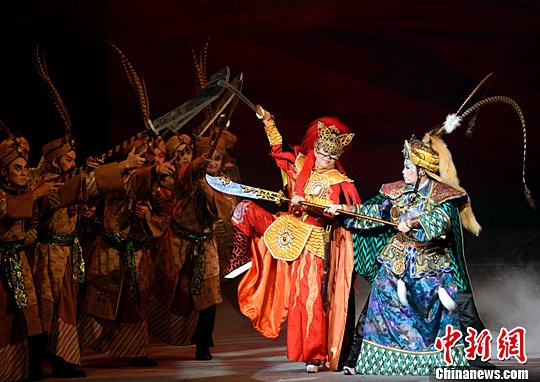7月17晚,由臺灣明華園戲劇總團演出的歌仔戲《貓神》在福建大劇院精彩上演。中新社記者 劉可耕 攝