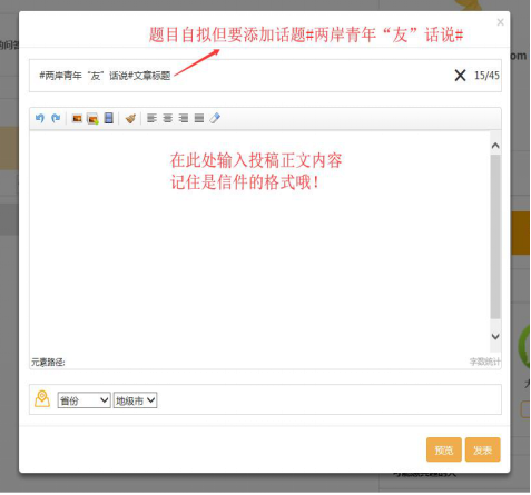 2.題目自擬,在標(biāo)題前添加話題#兩岸青年“友”話說#。
