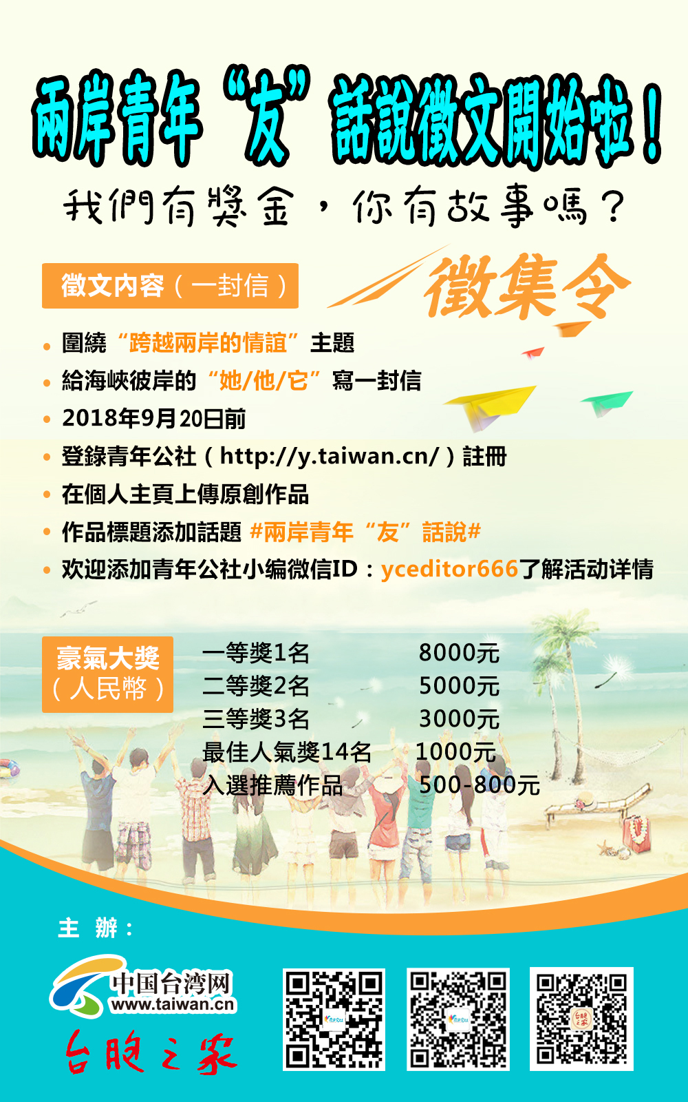 4.投稿過程中遇到問題請聯(lián)系青年公社小編,微信(ID:yceditor666),備注參加兩岸青年“友”話說征文活動。