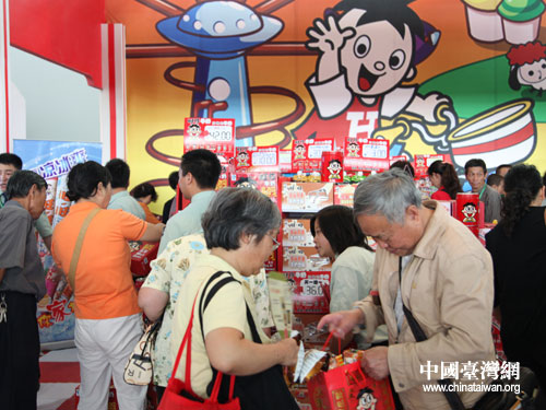 金秋時節(jié),丹桂飄香,位于昆明國際會展中心2號館的臺灣精致農(nóng)業(yè)暨精品館內(nèi)人潮涌動,叫買叫賣聲不斷,臺式香腸、果脯、阿里山高山茶、統(tǒng)一鮮橙多、康師傅冰紅茶、旺仔牛奶……這些大家耳熟能詳?shù)呐_灣美食悉數(shù)展出,引爆了春城市民選購熱情。