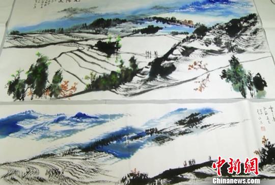 圖為兩岸和平文化藝術(shù)聯(lián)盟會秘書長李沃源畫作《元陽梯田》!钊A偉 攝