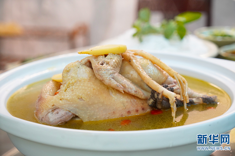 廣受食客好評的土罐燉土雞,在飯桌上常常穩(wěn)居“C”位(2020年12月30日攝)。新華網(wǎng)發(fā)(李丹 攝)