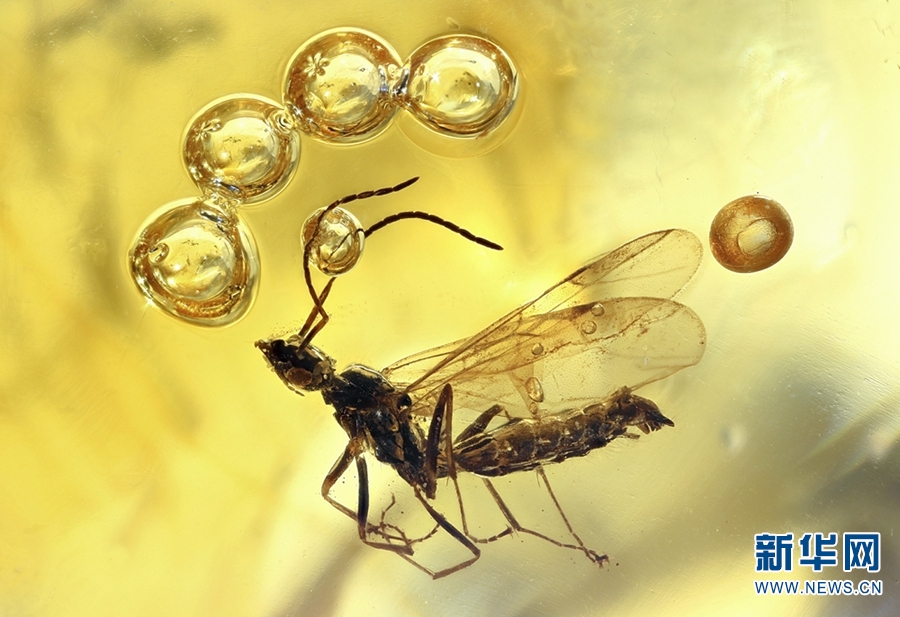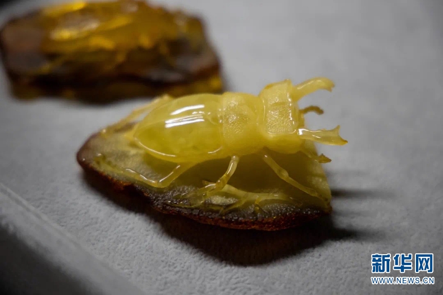 《琥珀——波蘭民族文化之魂》展出的蟲珀。新華網發(fā)(云南省博物館供圖)