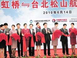根據(jù)媒體的報(bào)道,6月14日虹橋──松山航線正式開通,大陸東航、國航、上航以及臺(tái)灣的華航、長榮、復(fù)興航空獲準(zhǔn)運(yùn)營,每周共執(zhí)飛28個(gè)往返班次。