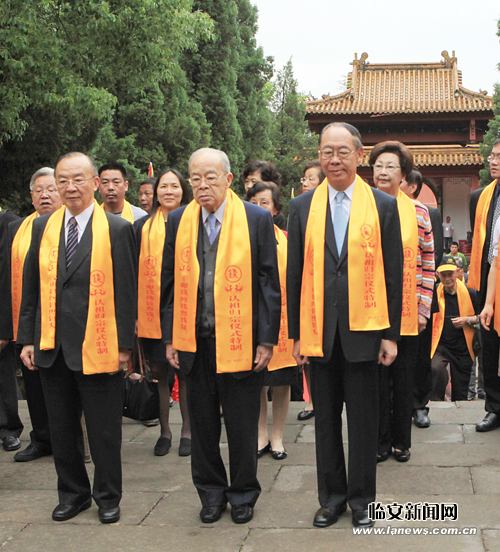 11日上午,錢(qián)镠第三十六世孫錢(qián)純、錢(qián)煦、錢(qián)復(fù)兄弟三人,帶領(lǐng)部分家屬來(lái)臨認(rèn)祖歸宗,祭拜先祖武肅王錢(qián)镠。