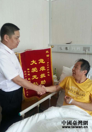 見他思鄉(xiāng)之情深切,濱江區(qū)臺辦又積極聯(lián)系安排其臺灣親屬來杭事宜等。6月8日派人派車陪同蕭老前往機(jī)場,由于機(jī)場的醫(yī)生在檢查后仍認(rèn)為不適合登機(jī),蕭老又重新回到了醫(yī)院治療。在這種情況下,社區(qū)依然每天堅(jiān)持派人去醫(yī)院看望和陪護(hù),做他的思想工作,讓其安心養(yǎng)病治療,有時(shí)一天要跑好幾次醫(yī)院,讓他在走向絕望的路上看到了希望。半月來,在社區(qū)工作人員熱情關(guān)心和武警醫(yī)院的精心治療下,蕭老的病情大有好轉(zhuǎn),血壓也基本正常,以前不能動的左腳也有了感覺。