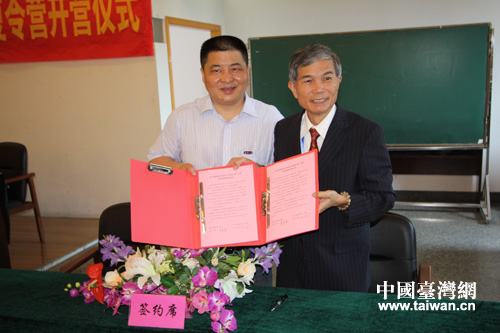 兩校校長簽訂姊妹學(xué)校備忘錄。(圖片來源:嘉興市臺(tái)辦)