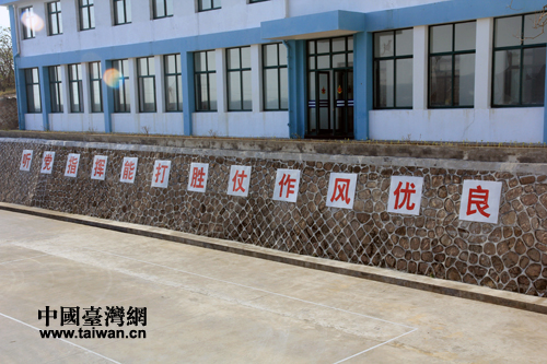日前,記者隨“萬(wàn)里海疆巡禮”采訪團(tuán)登上位于浙江省東南海域的南麂列島主島——南麂島,探訪東南沿海一線官兵的工作生活。圖為戰(zhàn)士們親手所寫的標(biāo)語(yǔ)。(中國(guó)臺(tái)灣網(wǎng) 馬迪 攝)