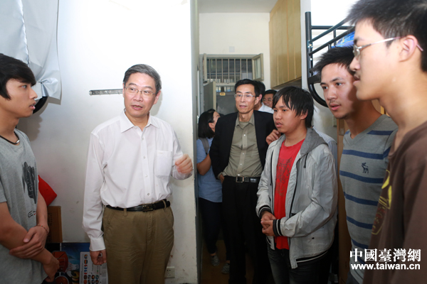 張志軍參觀浙大臺灣學生宿舍,并了解同學們的學習生活情況。(中國臺灣網(wǎng) 于斯文 攝)