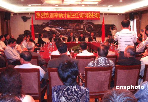 當(dāng)?shù)貢r(shí)間七月二十三日,海峽兩岸關(guān)系協(xié)會(huì)常務(wù)副會(huì)長(zhǎng)李炳才率領(lǐng)的訪問(wèn)團(tuán)結(jié)束了對(duì)美國(guó)為期六天的訪問(wèn)。訪問(wèn)團(tuán)當(dāng)日和洛杉磯的僑領(lǐng)及旅美臺(tái)灣同胞代表進(jìn)行座談,聽取有關(guān)發(fā)展兩岸關(guān)系的意見和建議,重點(diǎn)就胡錦濤總書記提出的構(gòu)建和平穩(wěn)定發(fā)展的兩岸關(guān)系進(jìn)行了闡述。 中新社發(fā) 賈國(guó)榮 攝
