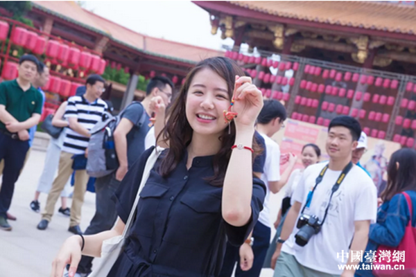 “畫檐慧聚寺,情絲憶臺灣”。此次活動中,學生們還參觀了由慧聚寺、慧聚文化廣場、兩岸(媽祖)文化交流中心、媽祖文化主題公園以及臺灣風情街五大部分組成的匯聚廣場。學生藺嘉瑩感嘆:“這里實在是太親切了,鄉(xiāng)音、媽祖廟、還有各種具有臺灣特色的建筑,感覺像是回到了家一樣。在這里只瞧見了‘一家’沒瞧見‘兩岸’。”
