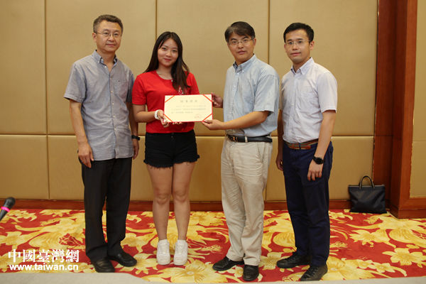 座談會(huì)現(xiàn)場(chǎng)為臺(tái)灣青年頒發(fā)結(jié)業(yè)證書(shū)。(中國(guó)臺(tái)灣網(wǎng) 陳文韜 攝)