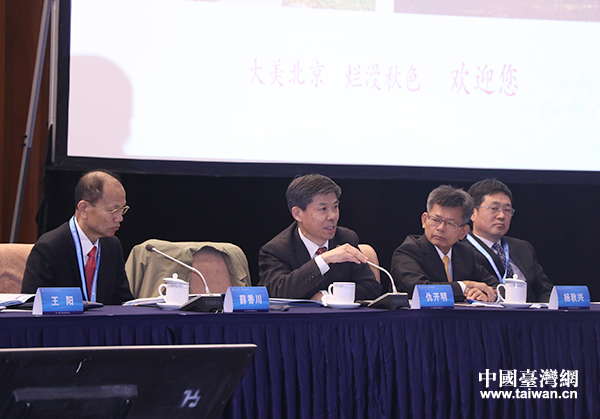 海峽兩岸關系研究中心主任仇開明作了題為《增強定力,促進兩岸經濟合作行穩(wěn)致遠》主題演講。(中國臺灣網 普燕 攝)