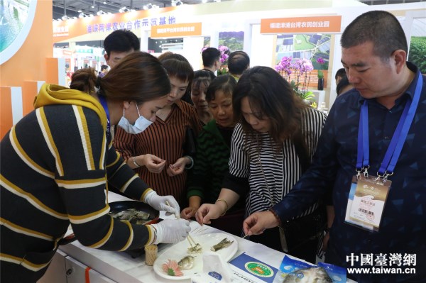 海峽兩岸農(nóng)業(yè)合作展區(qū)現(xiàn)場,兩岸特色農(nóng)產(chǎn)品吸引眾多參展觀眾參觀。(中國臺灣網(wǎng) 郜利敏 攝)