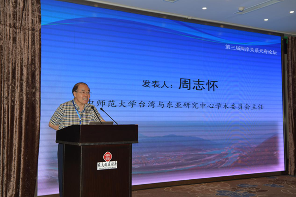 華中師范大學(xué)臺(tái)灣與東亞研究中心教授周志懷作主題演講。(圖片來(lái)源:四川省臺(tái)辦)
