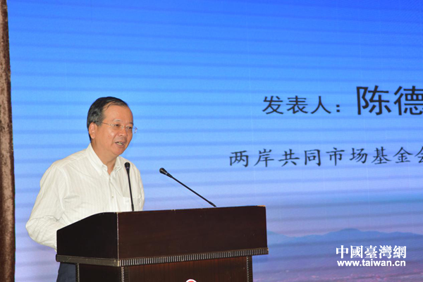 兩岸共同市場(chǎng)基金會(huì)執(zhí)行長(zhǎng)陳德升作主題演講。(圖片來(lái)源:四川省臺(tái)辦)