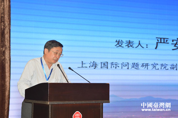 上海國(guó)際問(wèn)題研究院副院長(zhǎng)、研究員嚴(yán)安林作主題演講。(圖片來(lái)源:四川省臺(tái)辦)