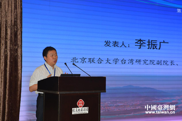 北京聯(lián)合大學(xué)臺(tái)灣研究院副院長(zhǎng)、教授李振廣作主題演講。(圖片來(lái)源:四川省臺(tái)辦)