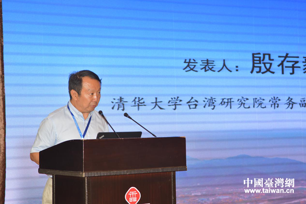 清華大學(xué)臺(tái)灣研究院常務(wù)副院長(zhǎng)、教授殷存毅作主題演講。(圖片來(lái)源:四川省臺(tái)辦)