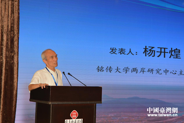 銘傳大學(xué)兩岸研究中心主任楊開煌作主題演講。(圖片來(lái)源:四川省臺(tái)辦)