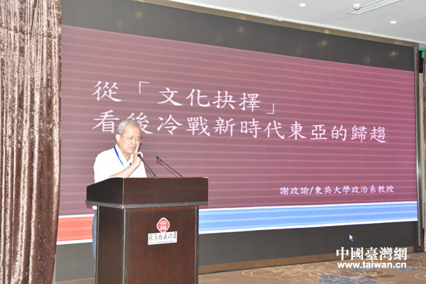 東吳大學(xué)政治系教授謝政諭作主題演講。(圖片來(lái)源:四川省臺(tái)辦)