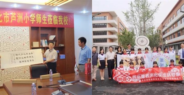 在泰期間,參訪團先后參觀了泰州第一外國語學(xué)校和寺巷中心小學(xué)。在泰外,新北市蘆洲小學(xué)的小朋友們參觀了校園,走進報告廳、教學(xué)樓、塑膠操場、國際部的閱覽室,感受泰外學(xué)生的學(xué)習(xí)生活環(huán)境和校園文化建設(shè)氛圍。在寺巷中心小學(xué),雙方開展了聯(lián)誼活動。雙方校領(lǐng)導(dǎo)互贈了禮物,參訪師生與學(xué)!昂脱拧睈坌闹驹笀F的師生聆聽了市文化館老師的書法講座,觀看了六年級學(xué)生畢業(yè)典禮。最后,參訪學(xué)生與學(xué)校和雅社團跳繩隊學(xué)生代表進行了中國傳統(tǒng)體育項目——跳繩運動交流展示。寺巷中心小學(xué)跳繩隊個人花樣跳繩別具特色,而素有“全島第一”美稱的蘆洲小學(xué)的學(xué)生帶來的花樣長繩表演同樣精彩,讓人驚嘆不已;顒咏Y(jié)束后,兩所學(xué)校的師生代表互贈禮物,共同合影,留下了美好瞬間。